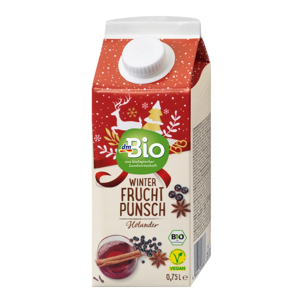 DmBio ovocný punč jablko & černý bez je lahodnou kombinací šťávy z jablek, černého bezu a višní.