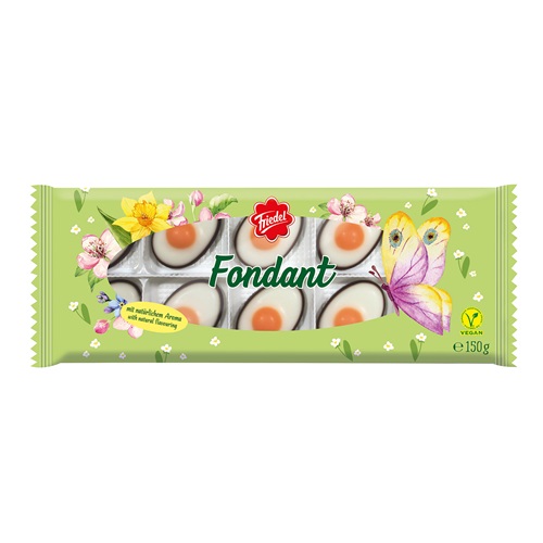 10 fondánových tvarů smažených vajec se základem z hořké čokolády. Bez umělých aromat a barviv. Vhodné pro vegany.
