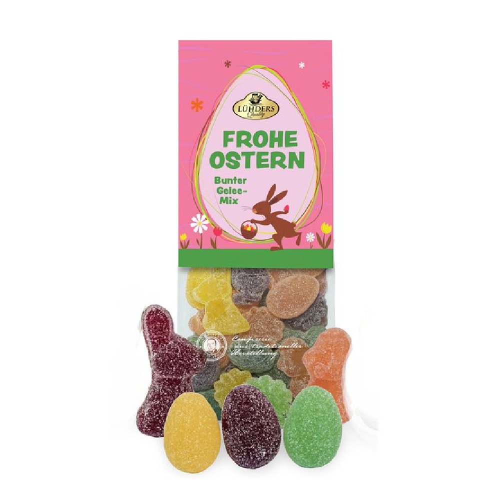 Ovocné žvýkací bonbony ve tvaru zajíčků, vajíček a kytiček.