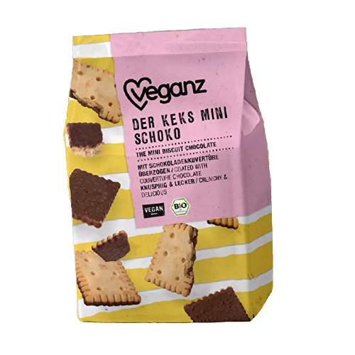 Křupavé malé sušenky jsou pokryté veganskou čokoládou a tato kombinace chutná stejně skvěle, jak to zní. Sušenky v mini velikosti jsou také skvělé pro sdílení, takže si je dejte do dalšího turistického batohu a těšte se na přestávku, než vůbec začnete. 🙂